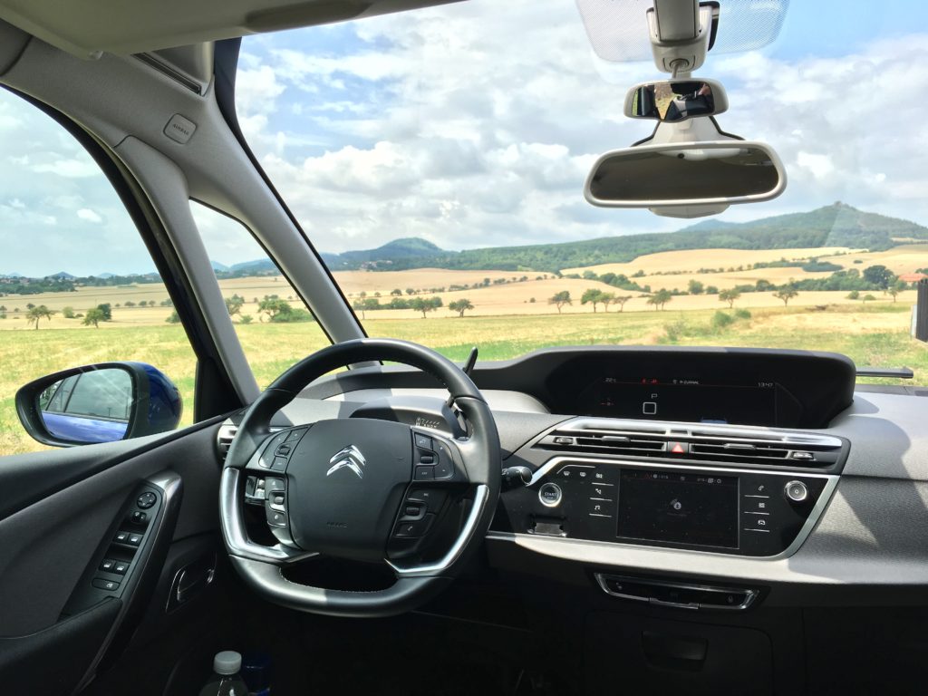 Cestu zpříjemní řada moderních asistentů od vestavěné navigace, sledování mrtvého úhlu přes automatická světla a stěrače až k adaptivnímu tempomatu. Ten ale ještě úplně svých prémiových soupeřů nedosahuje - po zastavení se například neumí rozjet, (protože) pro aktivaci je třeba jet minimálně 30km/h. Takže na pomalé popojíždění v koloně Citroen recept nemá. Na dálnici zase vyspělejší systémy po zapnutí směrovky začnou zrychlovat, Citroen až když mu auto zmizí z radaru, ale dá se popohnat plynem. Poslední věc, co mi chyběla bylo aktivní držení v jízdním pruhu. Citroen jen varuje při jeho opuštění, respektive aktivně zasahuje do řízení, aby se tak nestalo. To kdybyste snad měli na dálnici trávit hodně času, tak tohle je dobré vědět. Na té dálnici při 130 km/h motor točí cca 1800 otáček a spotřebuje kolem 7 litrů nafty, což byl i náš konečný průměr - po městě se dá ploužit za 8 litrů, mimo město klidně kolem 6 litrů. Rozhled kolem vyzývá spíše k výletnímu tempu a užívání si toho skutečně velkého předního skla. To dělá Grand Spacetourer opravdu unikátním. Nutno říct, že když vysvitne slunce a svítí řidiči do očí mimo úhel krytý tmavými brýlemi, je nutné stáhnout drobnou roletku a degradovat C4 na běžné auto nebo si nasadit klobouk :-)