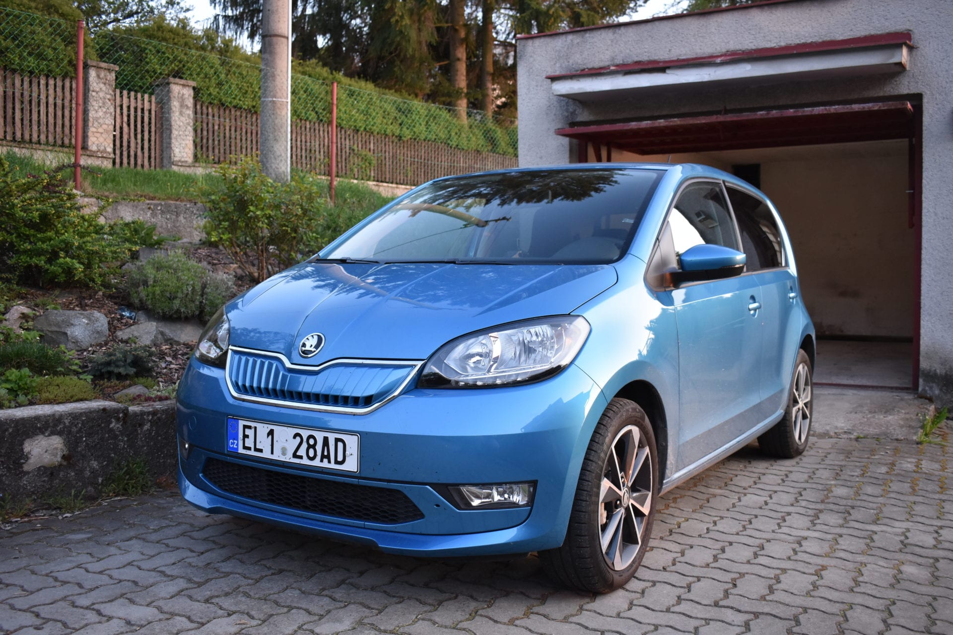 Popisovat krásy CitogoE vám tu rozhodně nebudu. O tom, jak vypadá, už bylo napsáno mnoho a jeho konvenční verzi viděl myslím každý. Snad jen vypíchnu pár změn oproti spalovací verzi. Jiná je přední maska a nárazník, které jsou přizpůsobené současné šabloně designu elektomobilů a působí uhlazeně. Standardem je LED denní svícení. Na zadních dveřích pak najdeme po vzoru nového designového jazyka automobilky nápis ŠKODA místo klasického znaku. Jinak je vše, tak jak známe.